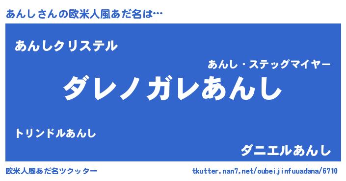 | 男性向けラノベタイトル風あだ名 | 『この素晴らしい世界にあんしを!』 |