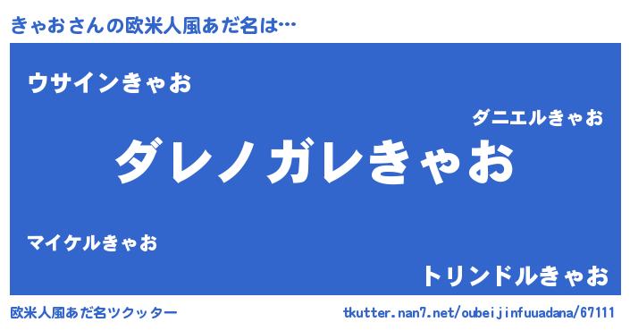 | 男性向けラノベタイトル風あだ名 | 『この素晴らしい世界にきゃおを!』 |