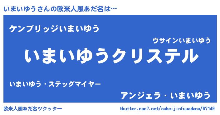 | ファンタジー風あだ名 | 『エターナルイマイユウー』『ゼイマトゥ』 |