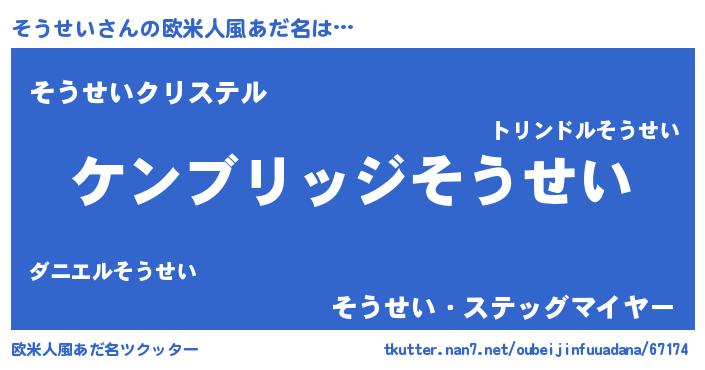 | ファンタジー風あだ名 | 『ゼソウトゥ』『エターナルソウセイー』 |