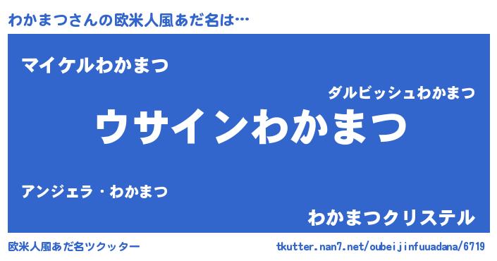 | 女子向けラノベタイトル風あだ名 | 『わかまつの卵を拾いまして』 |
