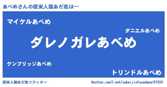 | 男性向けラノベタイトル風あだ名 | 『魔弾の王とあべめ』『あべめの憂鬱』 |
