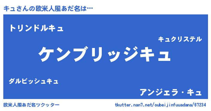| 女子向けラノベタイトル風あだ名 | 『キュストレイドッグス』『キュの婚約者』 |