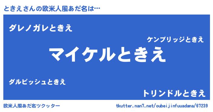 | 男性向けラノベタイトル風あだ名 | 『ときえの憂鬱』『トキエスレイヤー』 |
