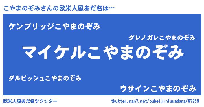 | 男性向けラノベタイトル風あだ名 | 『こやまのぞみの憂鬱』 |