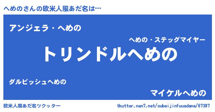 | 男性向けラノベタイトル風あだ名 | 『ヘメノスレイヤー』『へめのの憂鬱』 |