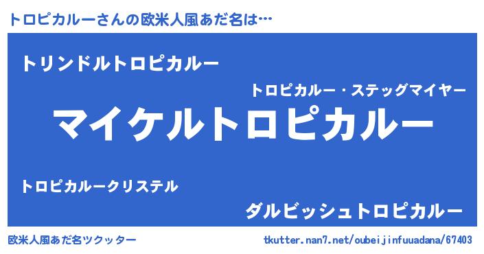 | 男性向けラノベタイトル風あだ名 | 『トロピカルーアートオンライン』 |