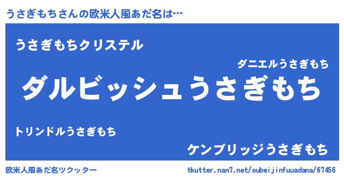 | 男性向けラノベタイトル風あだ名 | 『うさぎもちという概念が存在しない退屈な世界 』 |