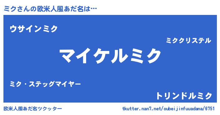 | ピコ太郎風あだ名 | 『ミコ次郎』『ミク八郎』『ピミ太郎』 |