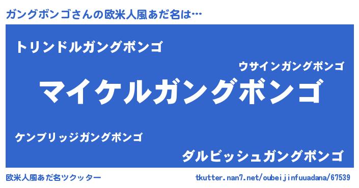 | 男性向けラノベタイトル風あだ名 | 『ガングボンゴの憂鬱』 |