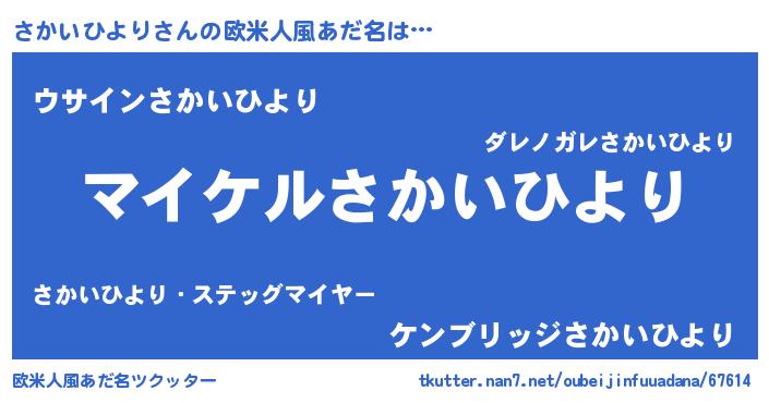 | ポケモン風あだ名 | 『サカチュウ』『ヒサカイヒヨリ』 |