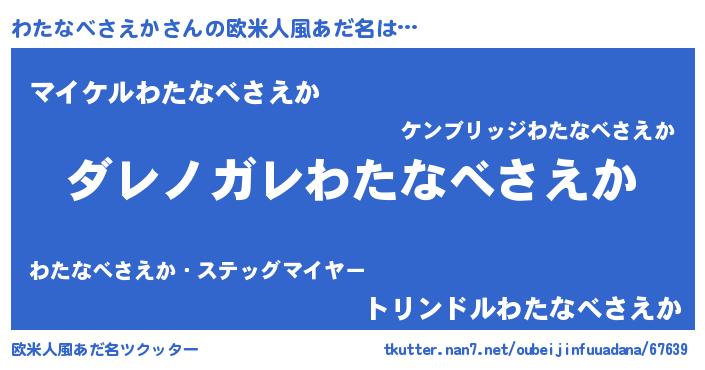 | 男性向けラノベタイトル風あだ名 | 『魔弾の王とわたなべさえか』 |