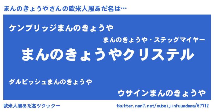 | 意味不明あだ名 | 『まんのきょうやフォーエバー』 |