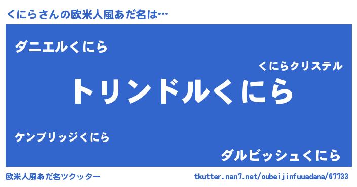 | 女子向けラノベタイトル風あだ名 | 『くにらの玉の輿計画!』『くにら恋絵巻』 |