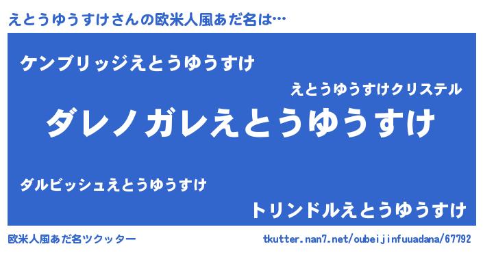 | 意味不明あだ名 | 『住所不定無職えとうゆうすけ(74歳)』 |