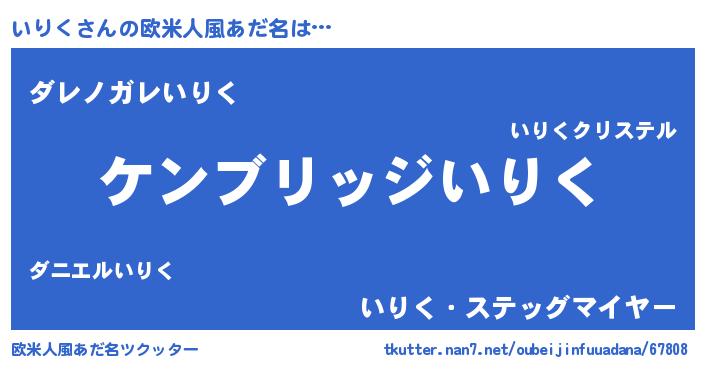 | 男性向けラノベタイトル風あだ名 | 『Re:いりくから始める異世界生活』 |