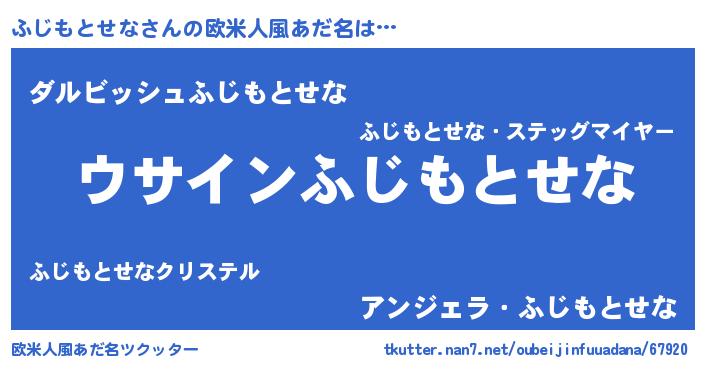 | 男性向けラノベタイトル風あだ名 | 『ふじもとせなの嫁は女の子じゃないと思った?』 |