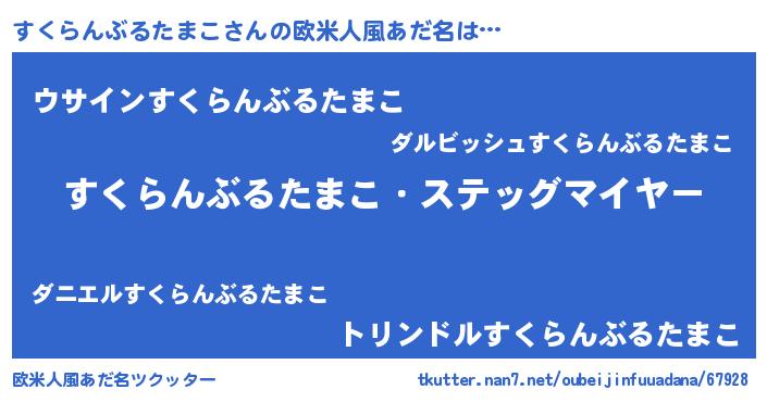 | ヘコむあだ名 | 『すく太郎』『すくらんぶるたまこ(遠い目)』 |