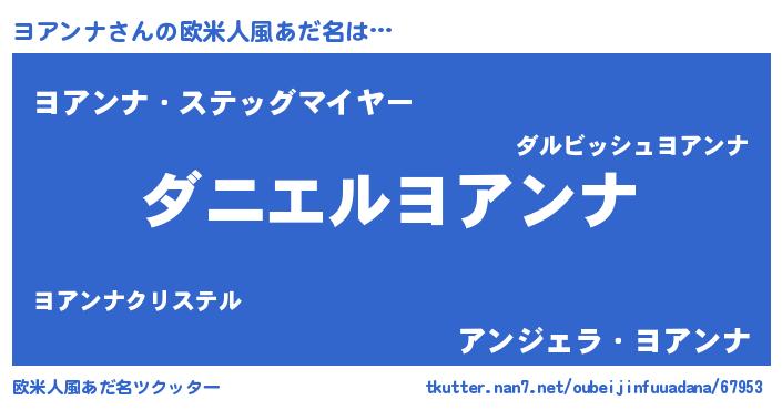 | 男性向けラノベタイトル風あだ名 | 『ノーゲーム・ノーヨアンナ』 |