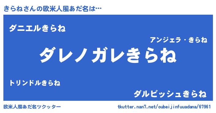 | 男性向けラノベタイトル風あだ名 | 『この素晴らしい世界にきらねを!』 |