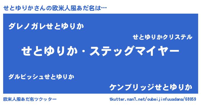 | 意味不明あだ名 | 『住所不定無職せとゆりか(98歳)』 |