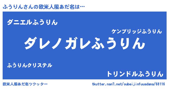 | 女子向けラノベタイトル風あだ名 | 『乙女ゲームの破滅フラグしかない悪役ふうりんに転生してしまった…』 |