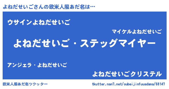 | 男性向けラノベタイトル風あだ名 | 『うちのよねだせいごが世界を掌握している!』 |