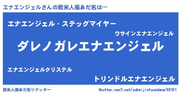 | 意味不明あだ名 | 『住所不定無職エナエンジェル(1歳)』 |