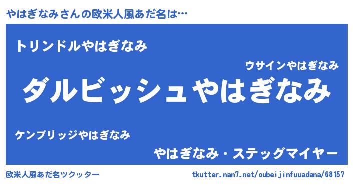 | 男性向けラノベタイトル風あだ名 | 『誰もが恐れるあのやはぎなみが、ぼくの専属メイドになるようです。』 |