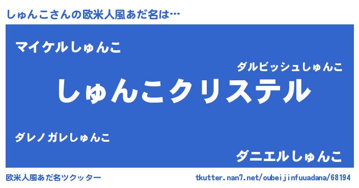 | ヒーロー風カッコイイあだ名 | 『ウルトラしゅんこマン』『ネオシュンコ』 |