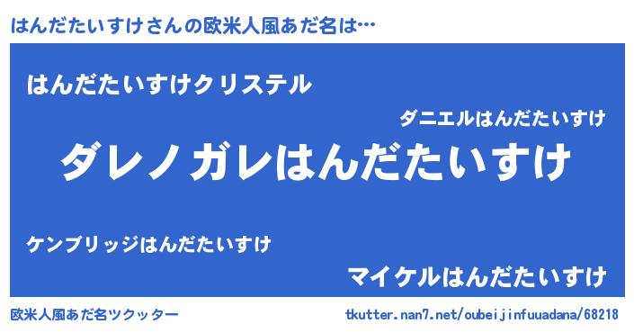 | 男性向けラノベタイトル風あだ名 | 『この素晴らしい世界にはんだたいすけを!』 |