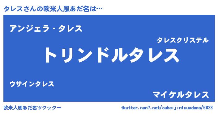 | 男性向けラノベタイトル風あだ名 | 『タレス~年齢イコール彼女いない歴の魔法使い~』 |