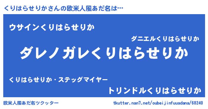 | ヘコむあだ名 | 『くりっちょ』『くりはらせりか(小並感)』 |