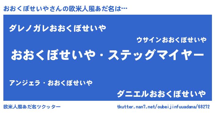 | 男性向けラノベタイトル風あだ名 | 『うちのおおくぼせいやが世界を掌握している!』 |