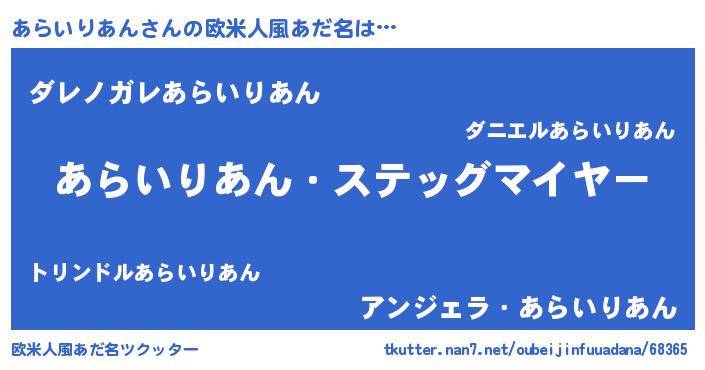 | ヘコむあだ名 | 『あらいりあん(笑)』『あらふぇ~』 |