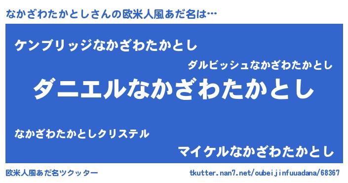 | 男性向けラノベタイトル風あだ名 | 『ノーゲーム・ノーナカザワタカトシ』 |