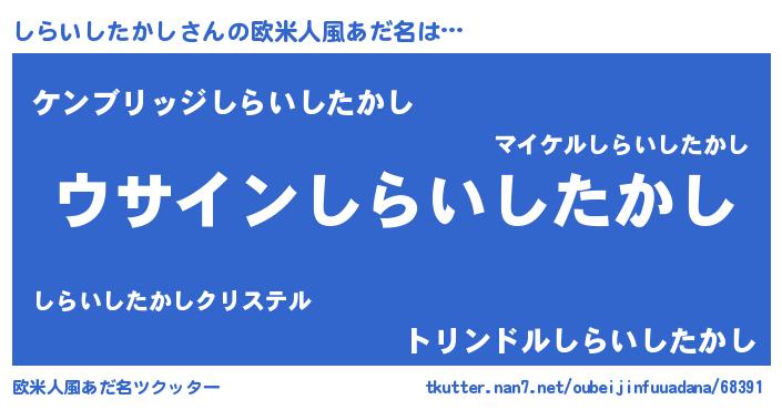 | 男性向けラノベタイトル風あだ名 | 『しらいしたかしの嫁は女の子じゃないと思った?』 |