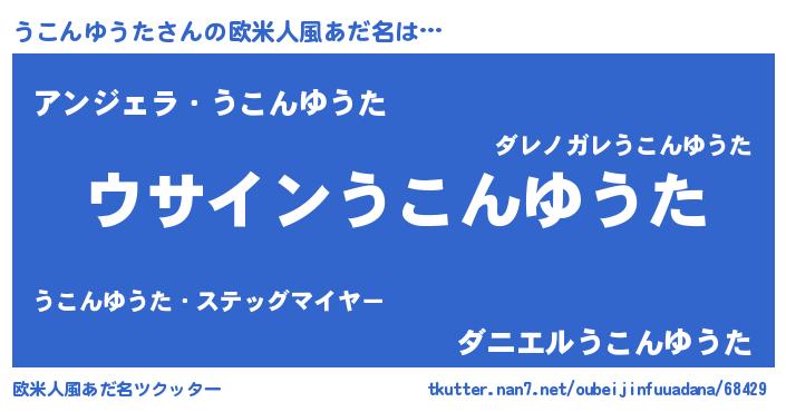 | 男性向けラノベタイトル風あだ名 | 『うこんゆうたの嫁は女の子じゃないと思った?』 |