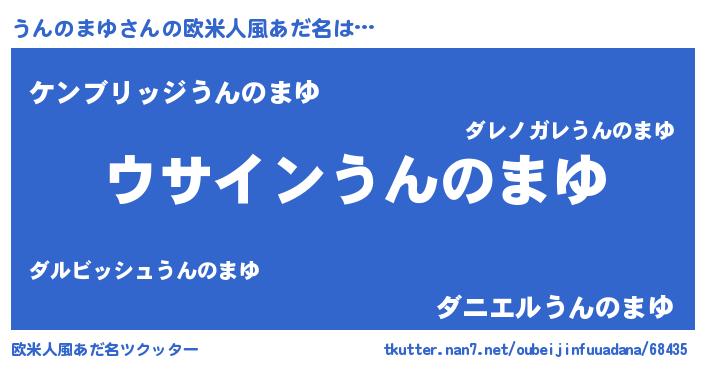 | 男性向けラノベタイトル風あだ名 | 『うんのまゆの嫁は女の子じゃないと思った?』 |