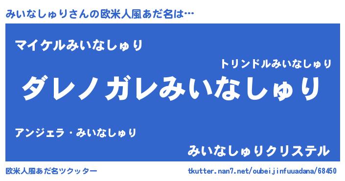 | 男性向けラノベタイトル風あだ名 | 『魔弾の王とみいなしゅり』 |