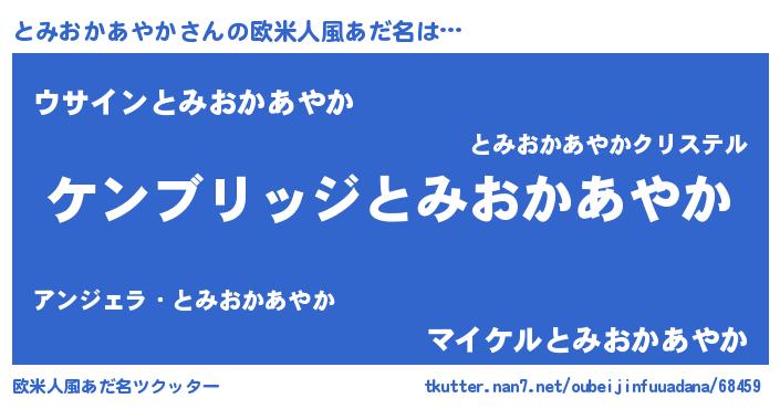 | 男性向けラノベタイトル風あだ名 | 『Re:とみおかあやかから始める異世界生活』 |