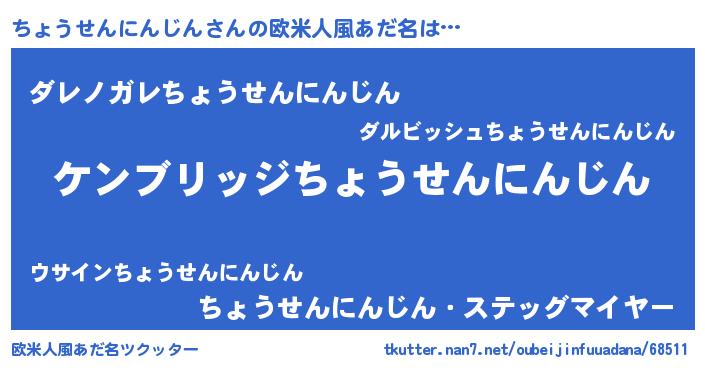 | 男性向けラノベタイトル風あだ名 | 『Re:ちょうせんにんじんから始める異世界生活』 |