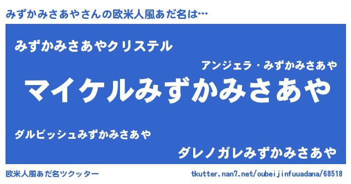 | 男性向けラノベタイトル風あだ名 | 『ミズカミサアヤアートオンライン』 |