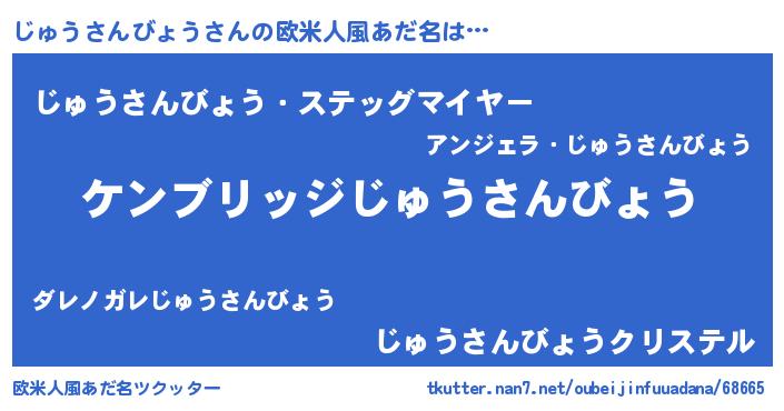 | 男性向けラノベタイトル風あだ名 | 『Re:じゅうさんびょうから始める異世界生活』 |
