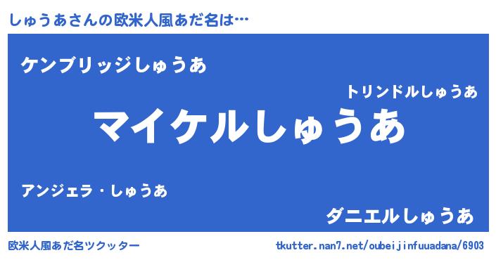 | ヒーロー風カッコイイあだ名 | 『スーパーシュウア』『最強戦士シュウア』 |