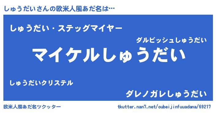 | 男性向けラノベタイトル風あだ名 | 『しゅうだいの憂鬱』『緋弾のシュウダイ』 |