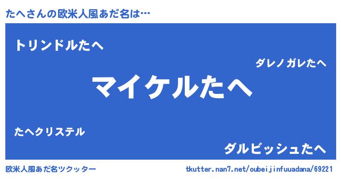 | 男性向けラノベタイトル風あだ名 | 『タヘアートオンライン』 |