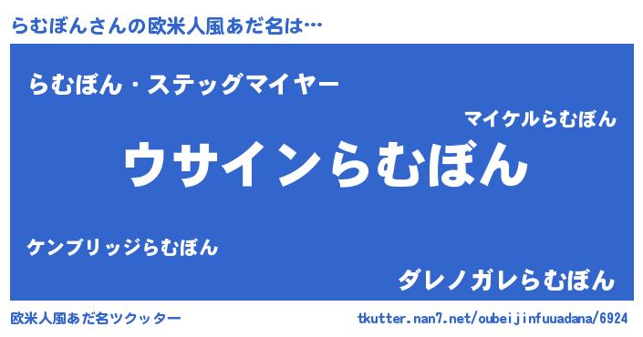 | 男性向けラノベタイトル風あだ名 | 『らむぼんの嫁は女の子じゃないと思った?』 |