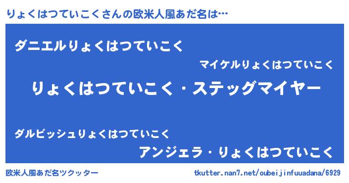 | ヒーロー風カッコイイあだ名 | 『慈愛の使者りょくはつていこく』 |