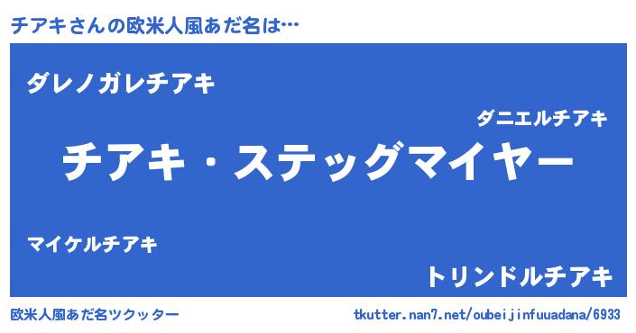 | 意味不明あだ名 | 『住所不定無職チアキ(85歳)』 |